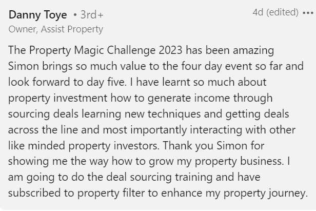 By the end of the challenge you will have all the training and support you need to find great property deals, fund them and transform your property investing results.